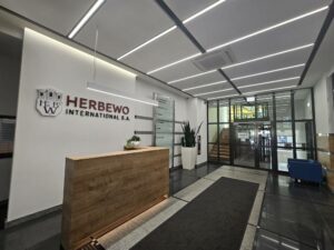 Nowe logo na nowej recepcji na Lubelskiej 29 Recepcja budynku Lubelska 29 z nowym logo HERBEWO International S.A. ✨🏢😀